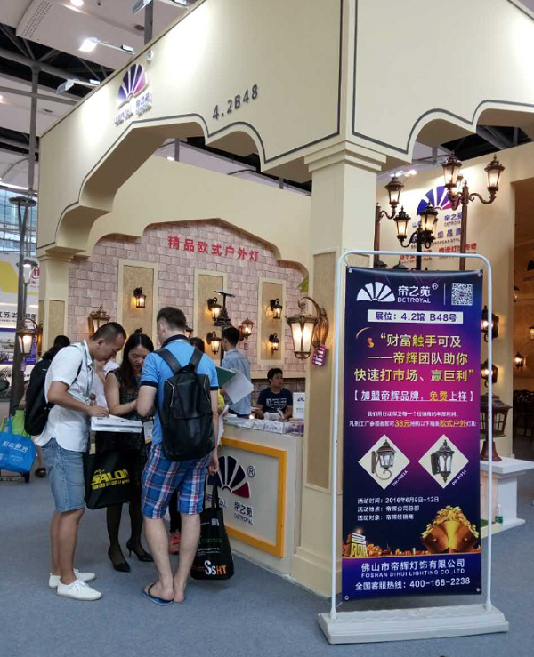 當天,來我們展位洽談的客人絡繹不絕,國外、國內的新舊客戶親臨現場,都對我們的產品給予極高評價,尤其是帝輝自主研發和生產的太陽能LED燈、戶外壁燈、歐式庭院燈、草坪燈,無論從質量、顏色還是外觀,都追求卓越,得到廣大客戶朋友的大力贊賞。